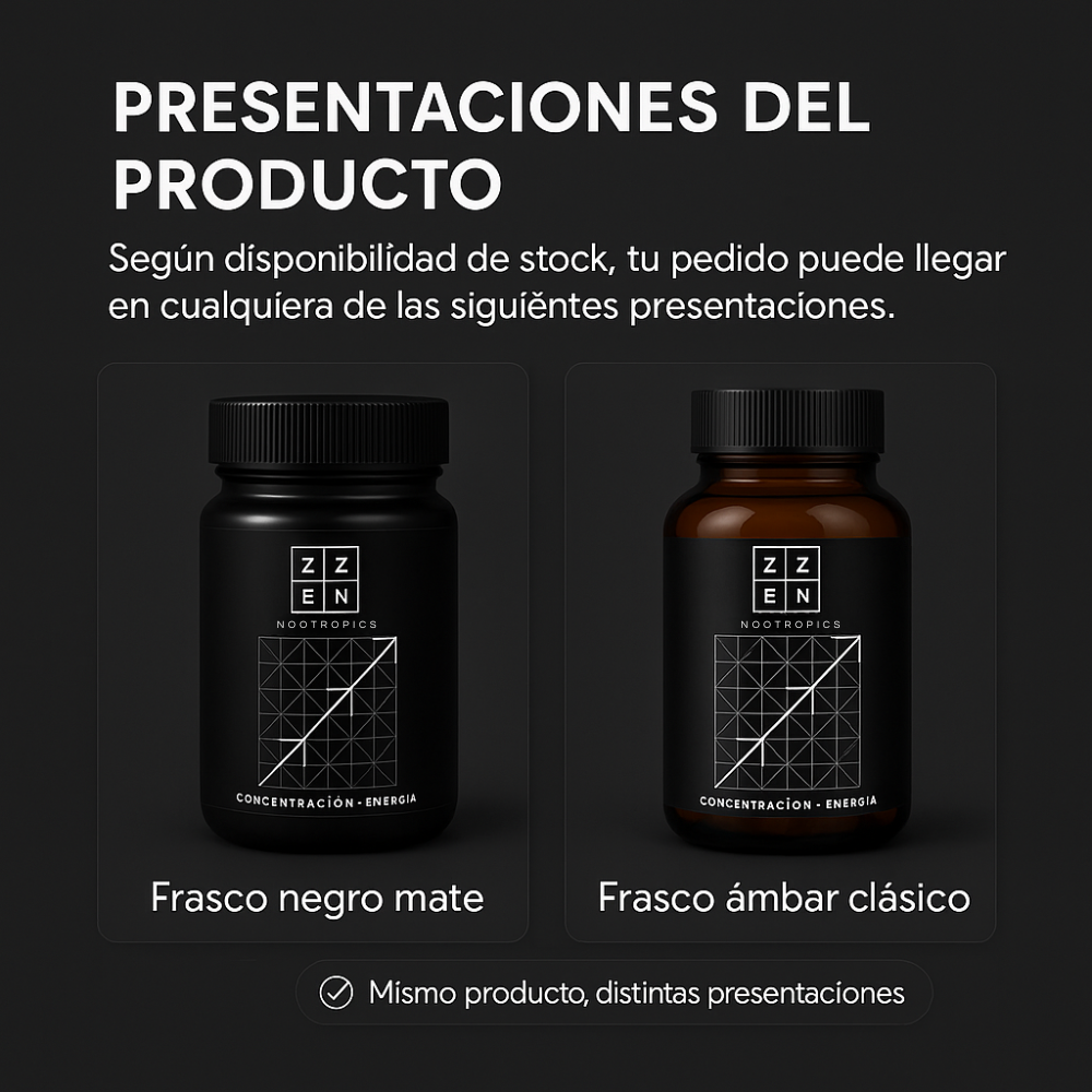 Mientras muchos nootrópicos en el mercado utilizan fórmulas genéricas o dosis poco respaldadas, en ZZEN hemos dedicado años a investigar, seleccionar y formular únicamente con ingredientes avalados por la evidencia científica, en las dosis óptimas que garantizan resultados reales y seguros.